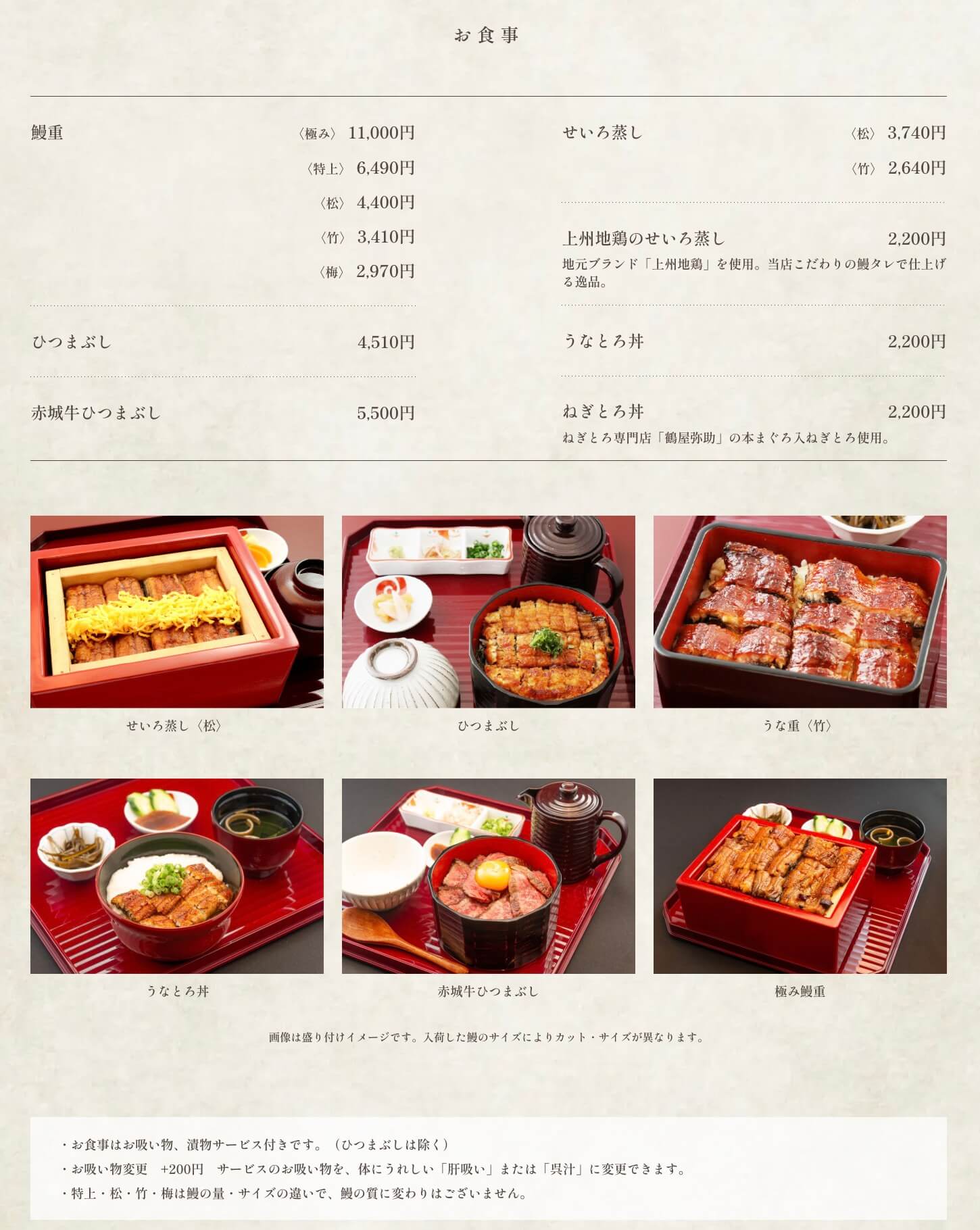 鰻重は2,970円〜。