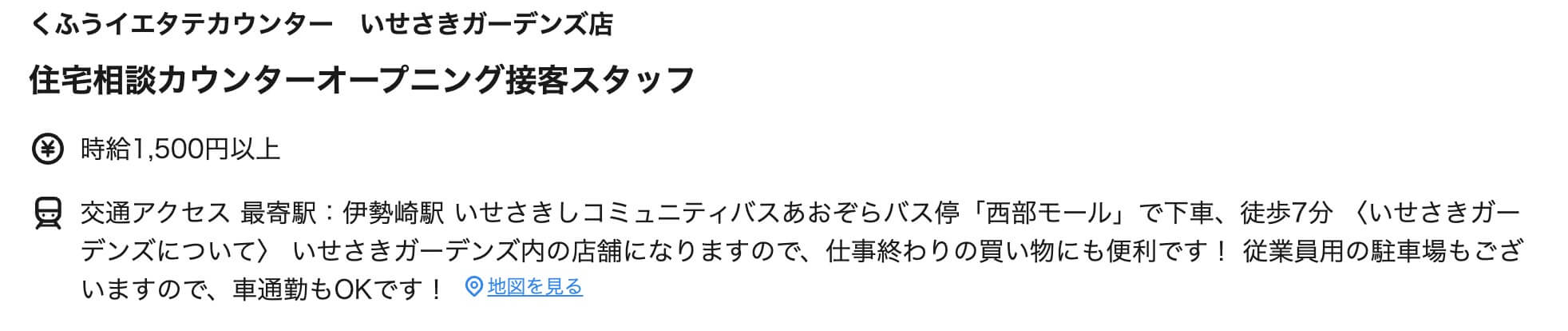 ▼『くふうイエタテカウンター いせさきガーデンズ店』求人情報より
