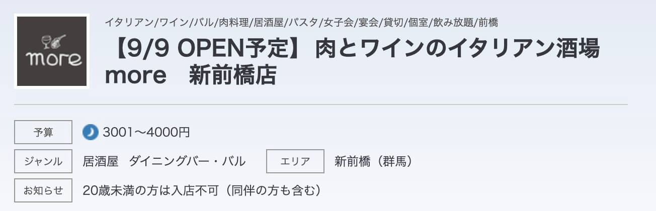 肉とワインのイタリアン酒場 more 新前橋店(群馬・前橋市)オープン