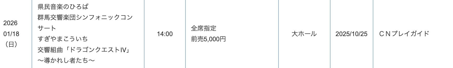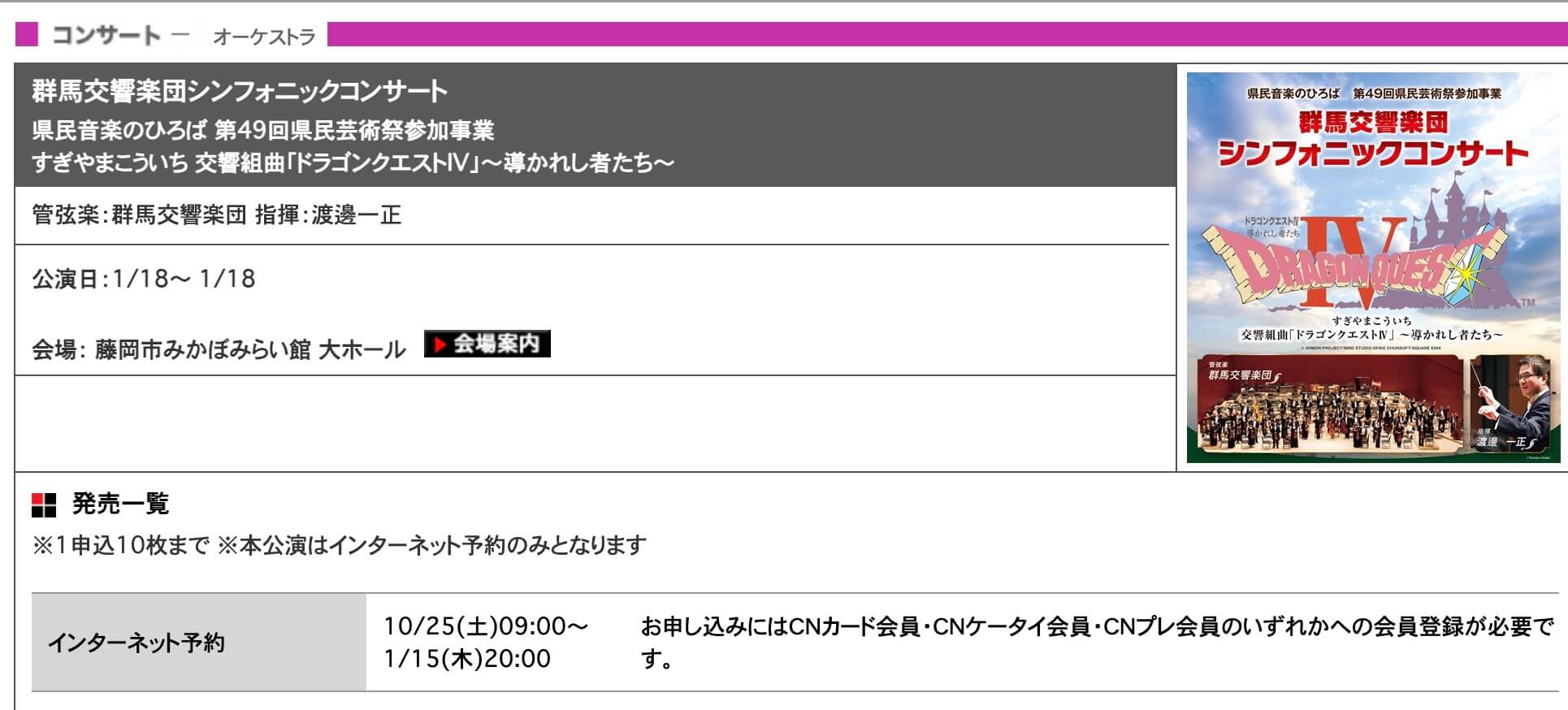 - 公演名:群馬交響楽団 シンフォニックコンサート/交響組曲「ドラゴンクエストIV 〜導かれし者たち〜」