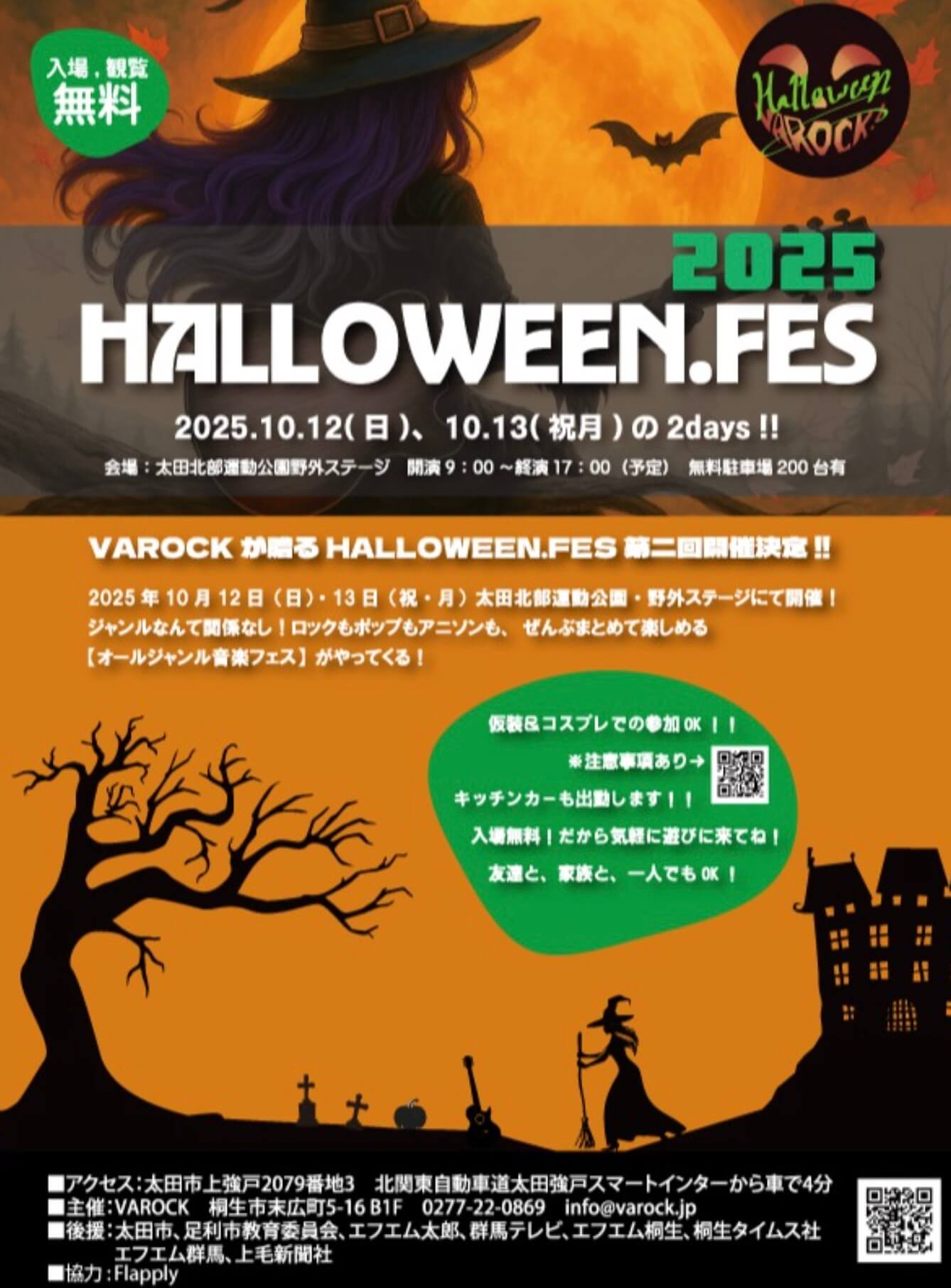 群馬県太田市の八王子山公園にて、『HALLOWEEN.FES 2025』が開催されます。