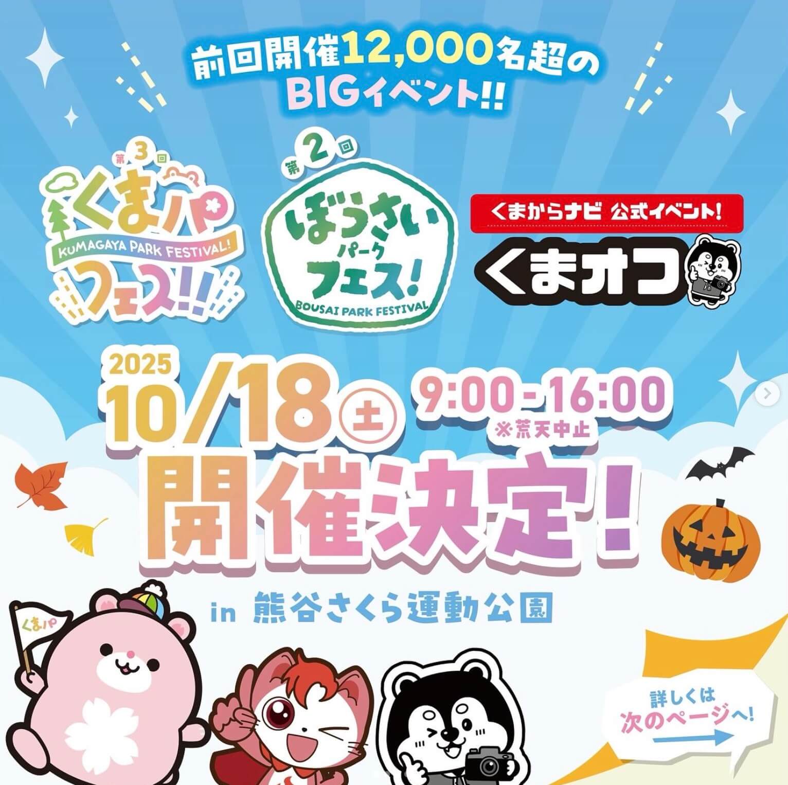 熊谷の秋を盛り上げる恒例イベント『第3回くまがやパークフェスティバル』が、2025年10月18日(土)に熊谷さくら運動公園で開催されます。