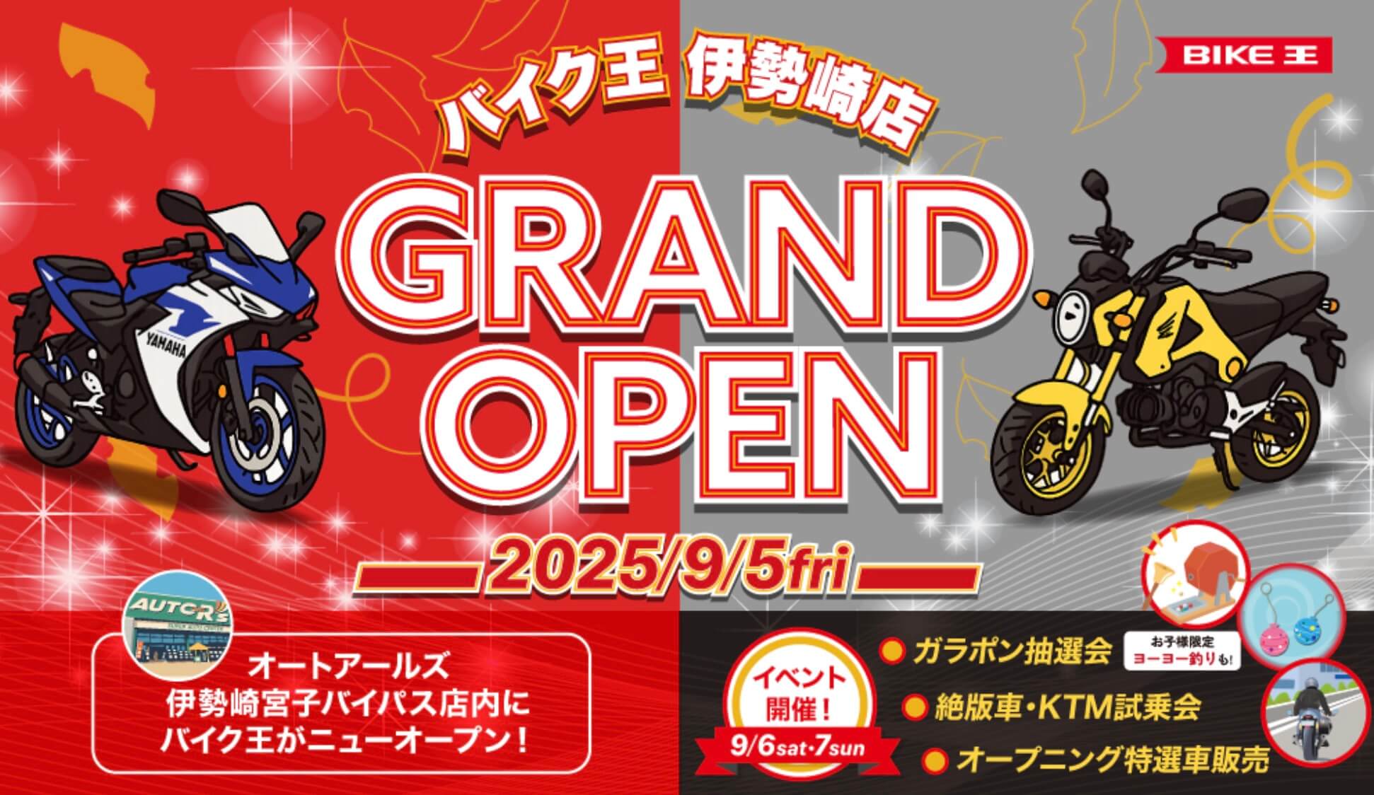 バイクの買取・販売のバイク王が、伊勢崎エリアに新たな出店となります。