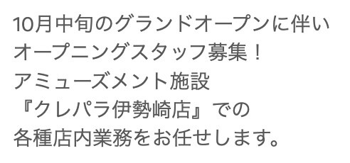 ▼『クレパラ伊勢崎店』のオープン情報(求人情報より)