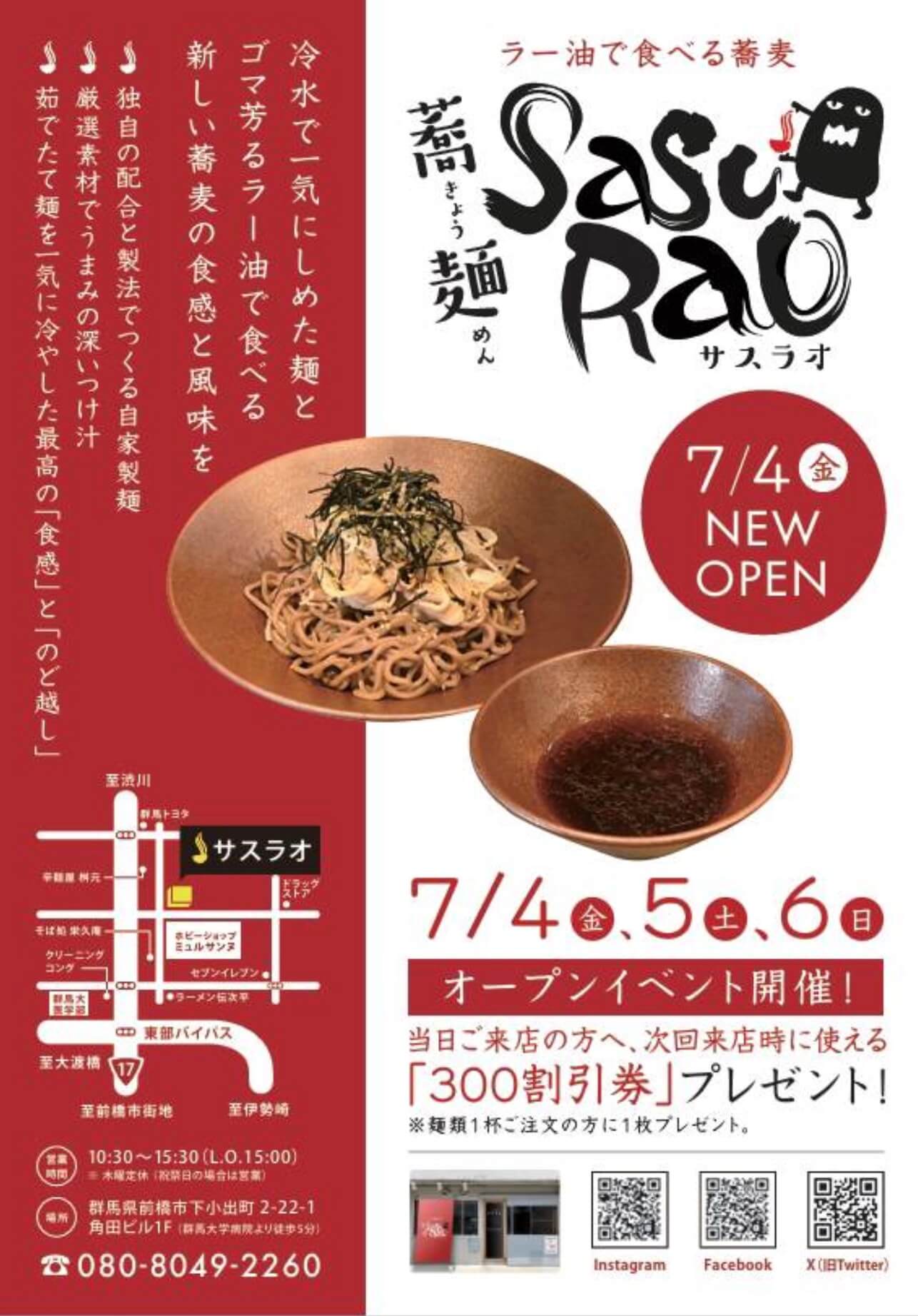 前橋市に新店『蕎麺サスラオ』がオープン予定!ラー油×蕎麦の新感覚メニューも登場(群馬・前橋市)