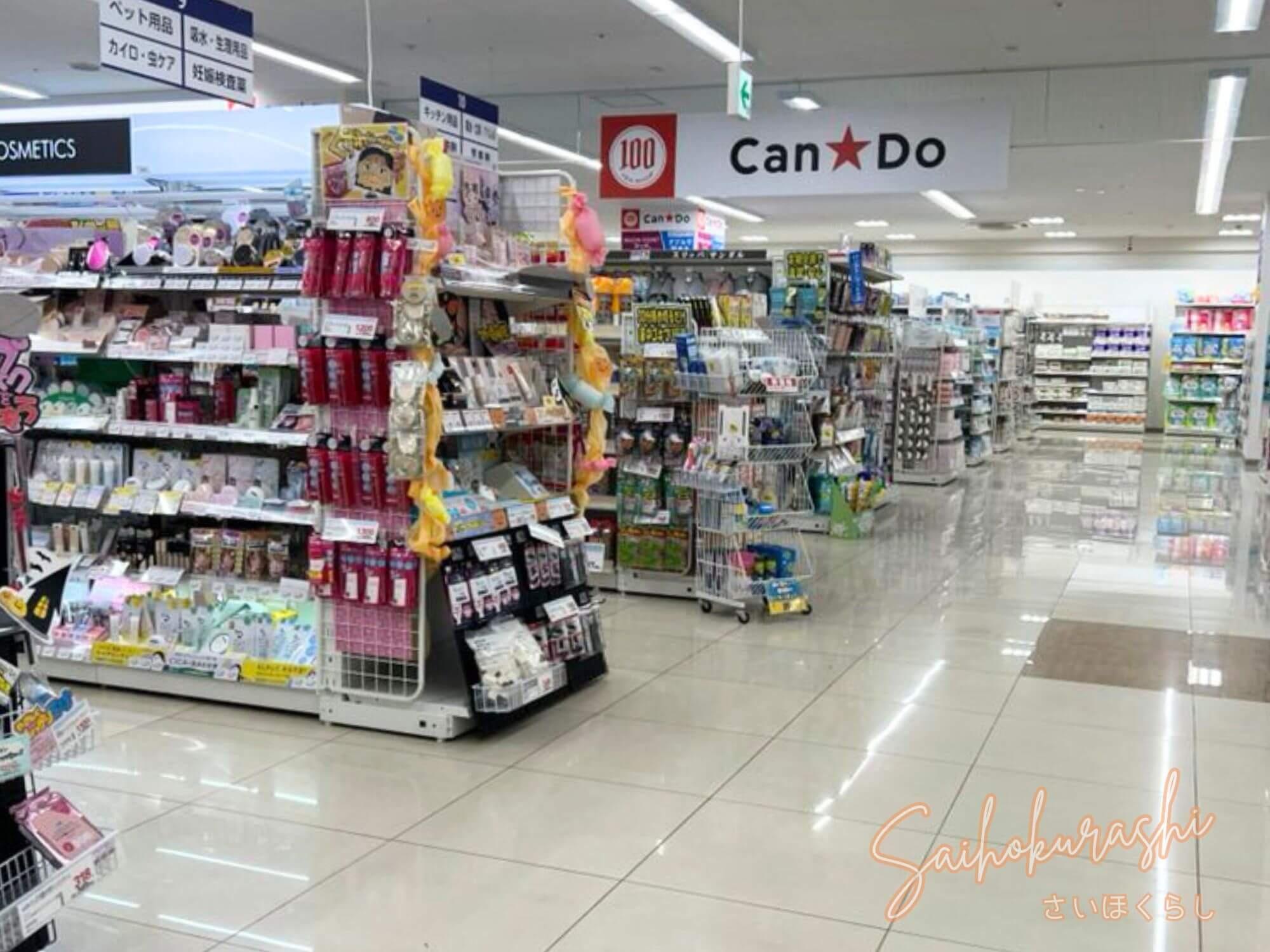キャンドゥは、生活雑貨や文房具、キッチン用品、掃除グッズなど、暮らしに役立つ幅広いアイテムを取りそろえる人気の100円ショップ。