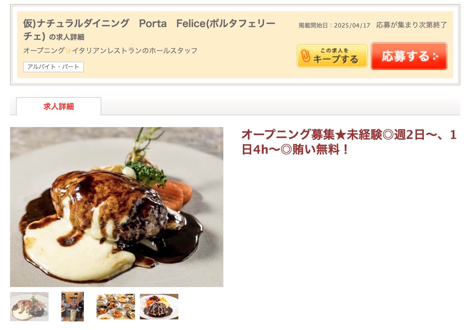 求人情報によると『(仮)ナチュラルダイニング Porta Felice(ポルタフェリーチェ)』は、30~40代くらいを対象にしたカジュアルなイタリアンレストランとのこと。
