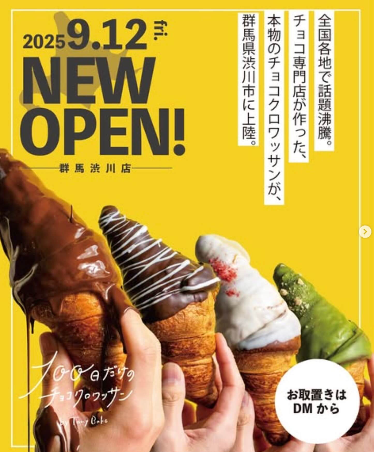 群馬県渋川市石原に、『100日だけのチョコクロワッサン by Tony Bake 群馬渋川店』が2025年9月12日(金)にオープンします。