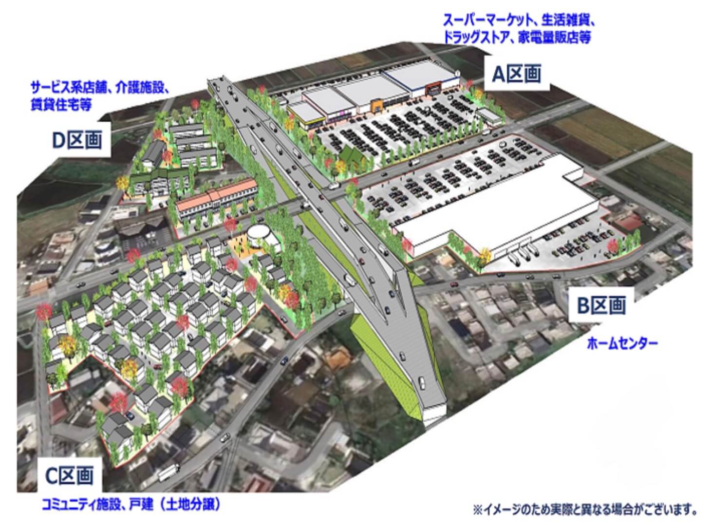 現状は農地が広がる地域ですが、大型商業施設の整備により地域の活性化が期待されています。