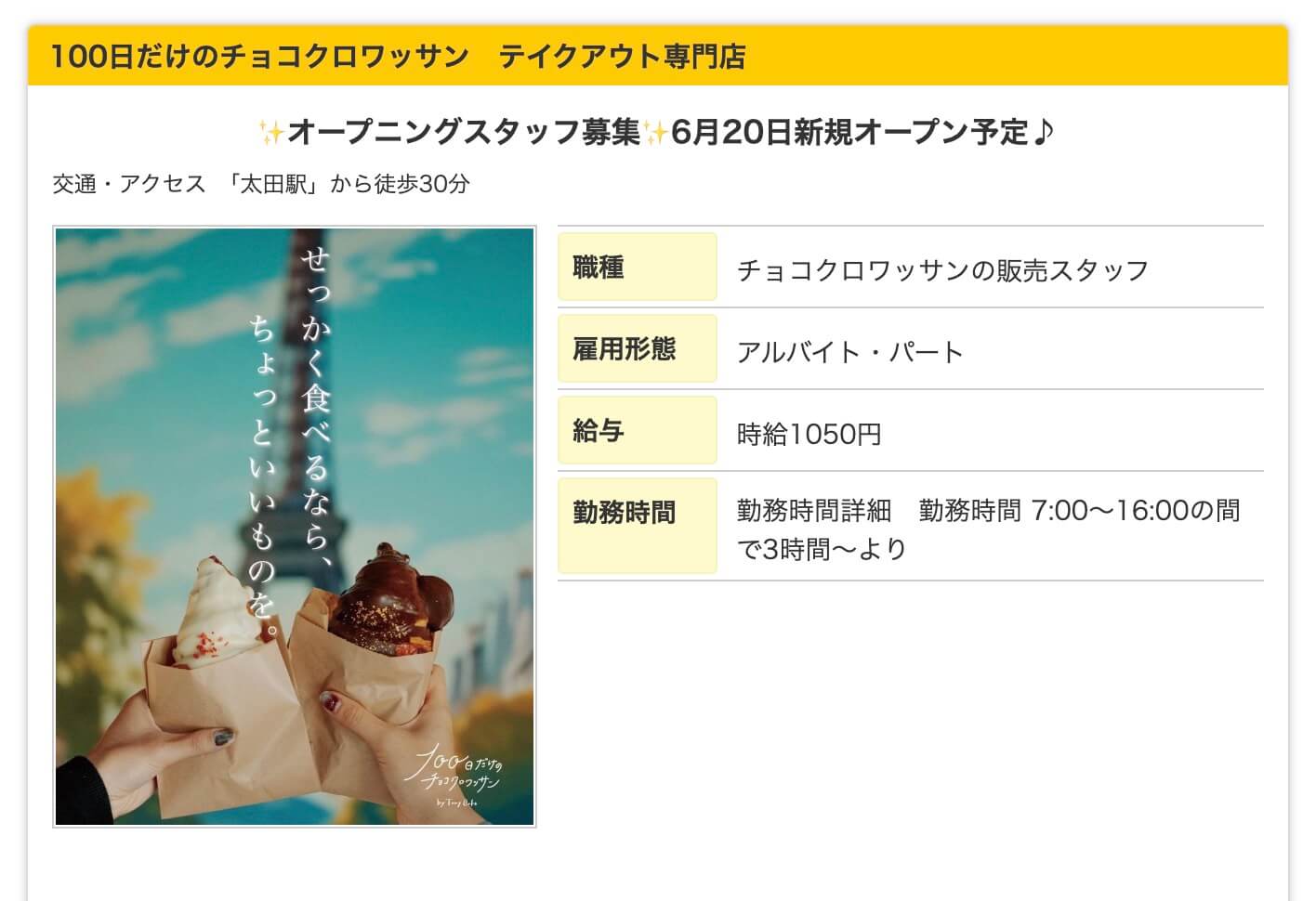 群馬県太田市下浜田町に『100日だけのチョコクロワッサン』がオープン予定!