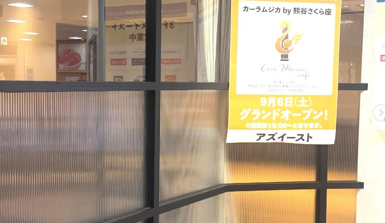 熊谷駅ビル「ティアラ21」3階・アズイーストに、音楽とカフェを融合させた新しいスポット 「カーラムジカ&カフェ by 熊谷さくら座」 がオープンします。