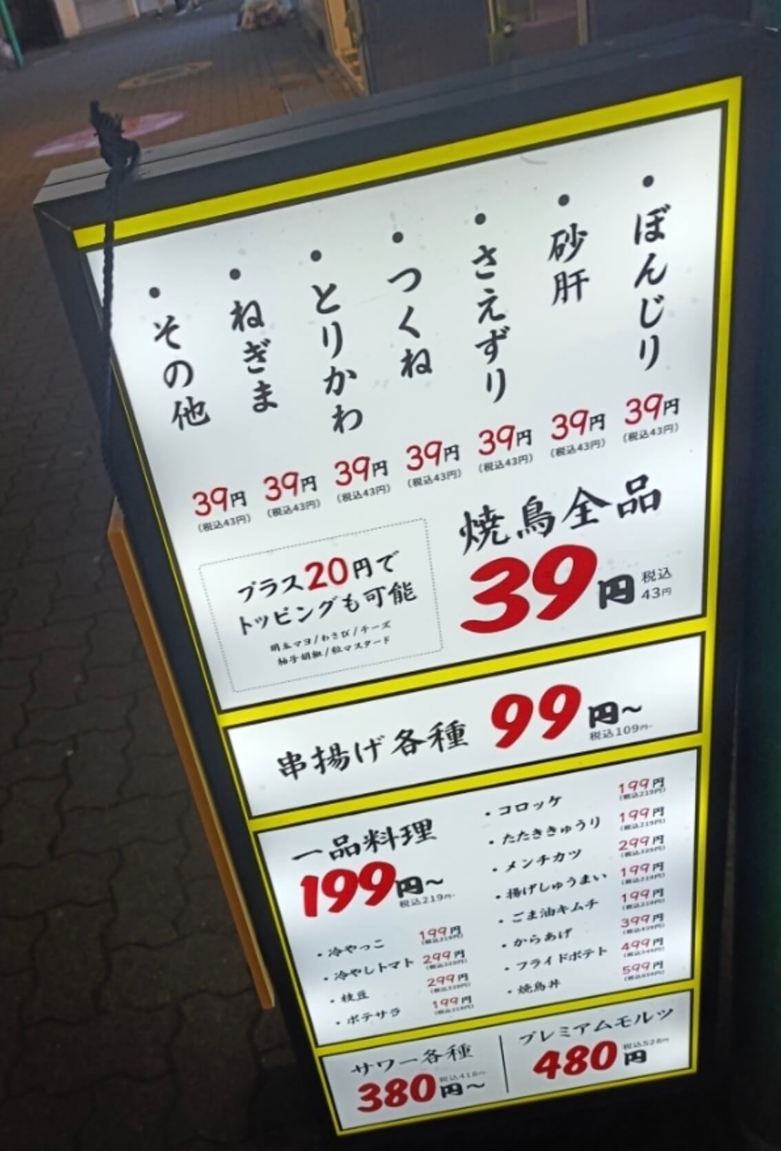 「やきとりさんきゅう」の特徴は、なんといっても焼き鳥1本39円という驚きの価格。