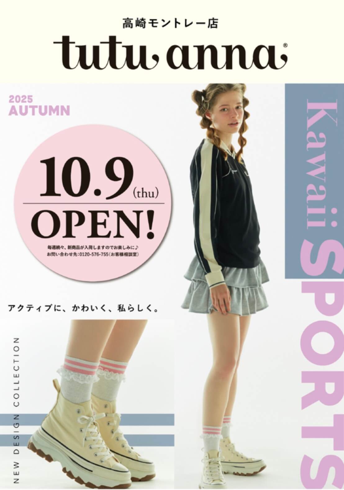 群馬県高崎市八島町「高崎モントレー」コンコース階に、『tutuanna(チュチュアンナ) 高崎モントレー店』が2025年10月9日(木)に新規オープン予定となっています。