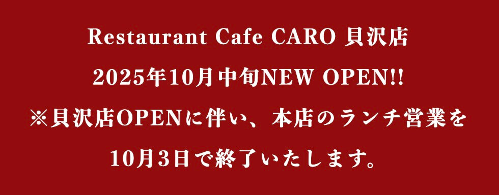 ▼『Restaurant Cafe CARO 貝沢店』のオープン情報(公式サイトより)