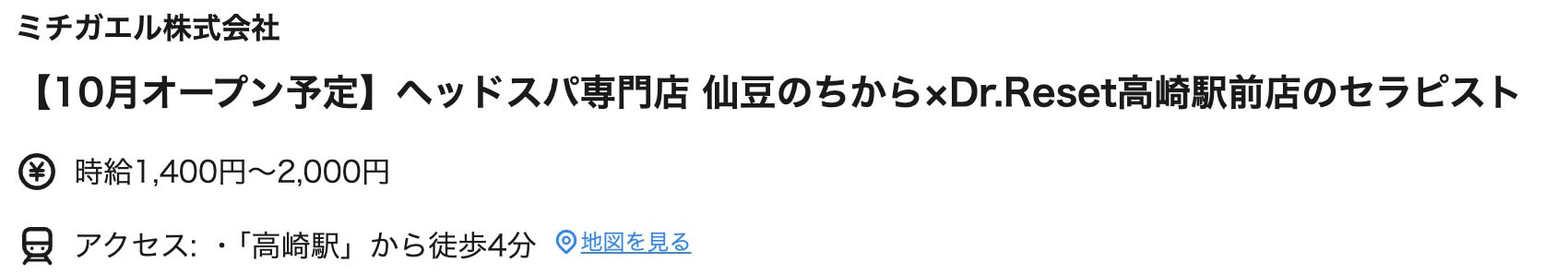 ▼『ヘッドスパ専門店 仙豆のちから×Dr.Reset 高崎駅前店』オープンのお知らせ(求人情報より)