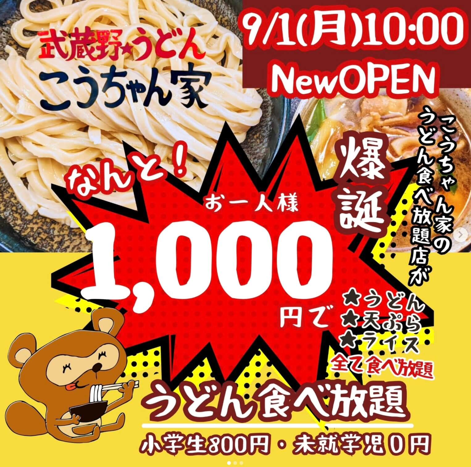 ▼『武蔵野★うどんこうちゃん家』オープンのお知らせ(公式インスタグラムより)