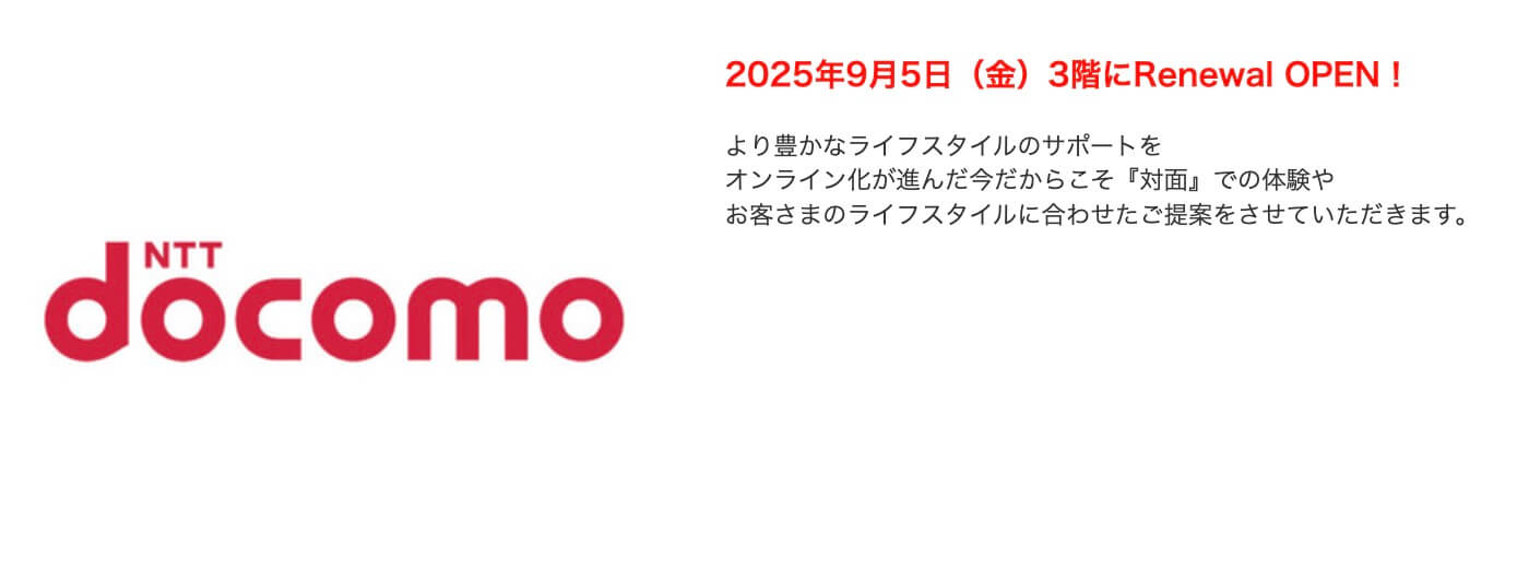これまで1階アトリウム街区で営業していたドコモショップが3階に移転。