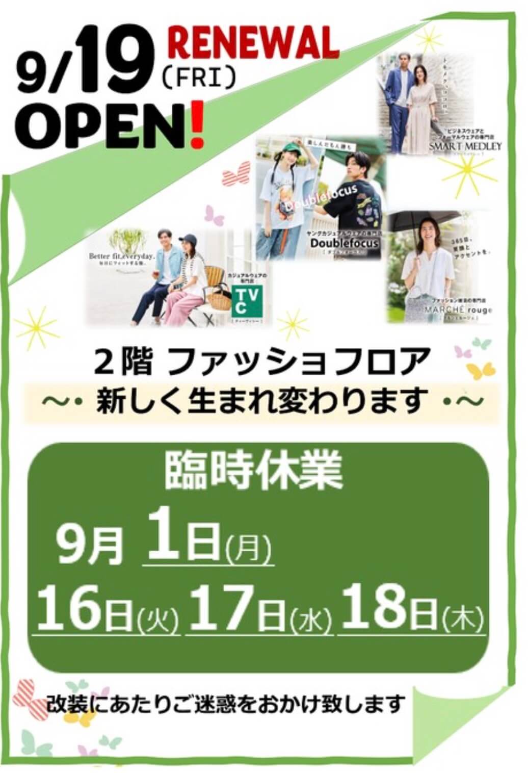 それに伴い、2階フロアは9月16〜18日が臨時休業となりますのでご注意ください。