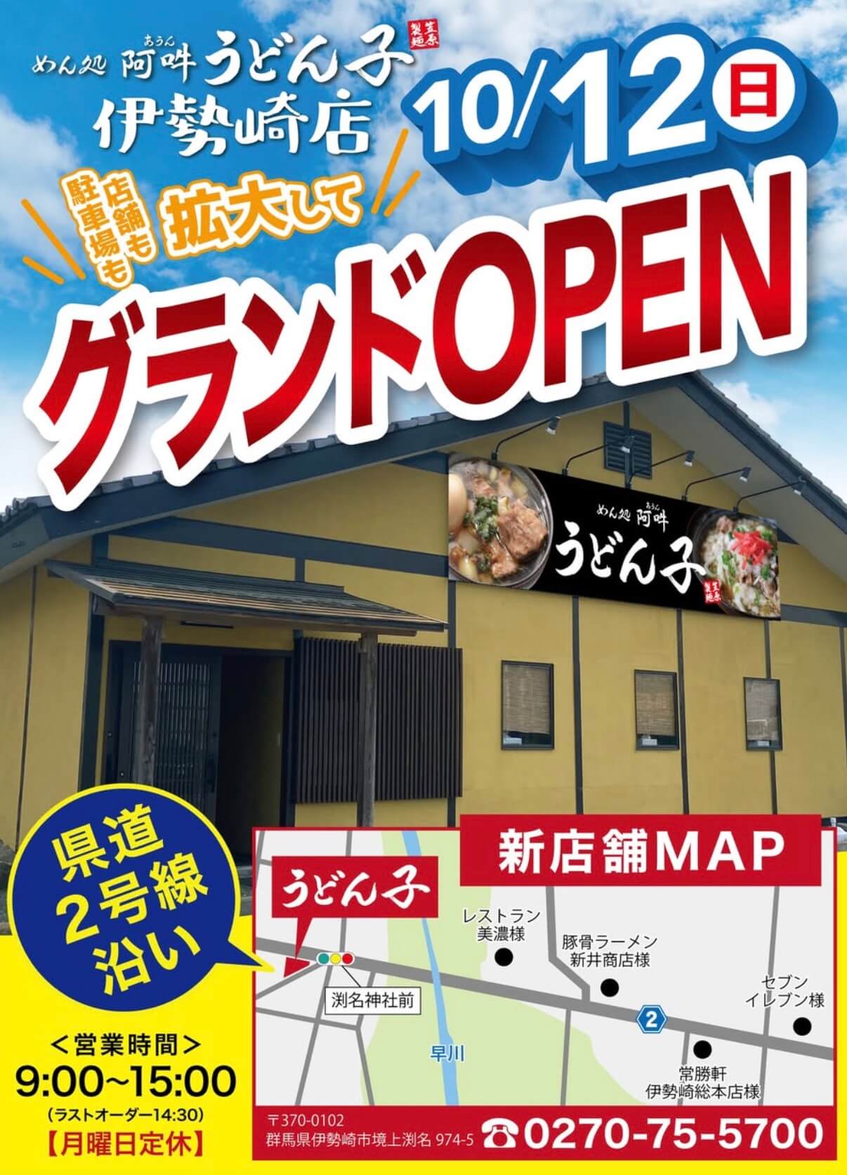 ▼『めん処 阿吽 うどん子 伊勢崎店』リニューアルオープンのお知らせ