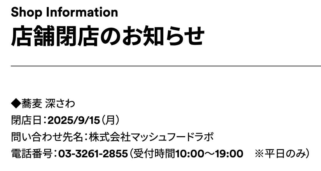 『蕎麦 深さわ』が2025年9月15日をもって閉店