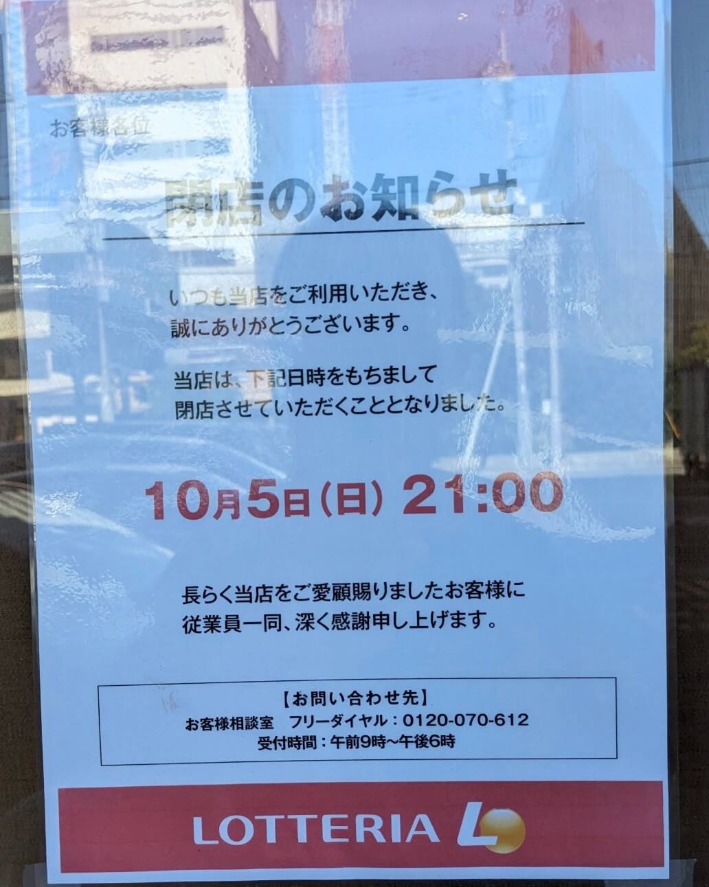 ▼『ロッテリア 高崎店』に掲示された閉店のお知らせ(googleマップより)