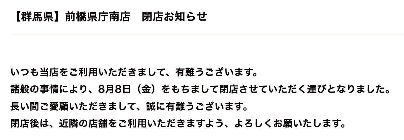 前橋市紅雲町にある『辛麺屋 桝元 前橋県庁南店』が、2025年8月8日(金)をもって閉店することがわかりました。