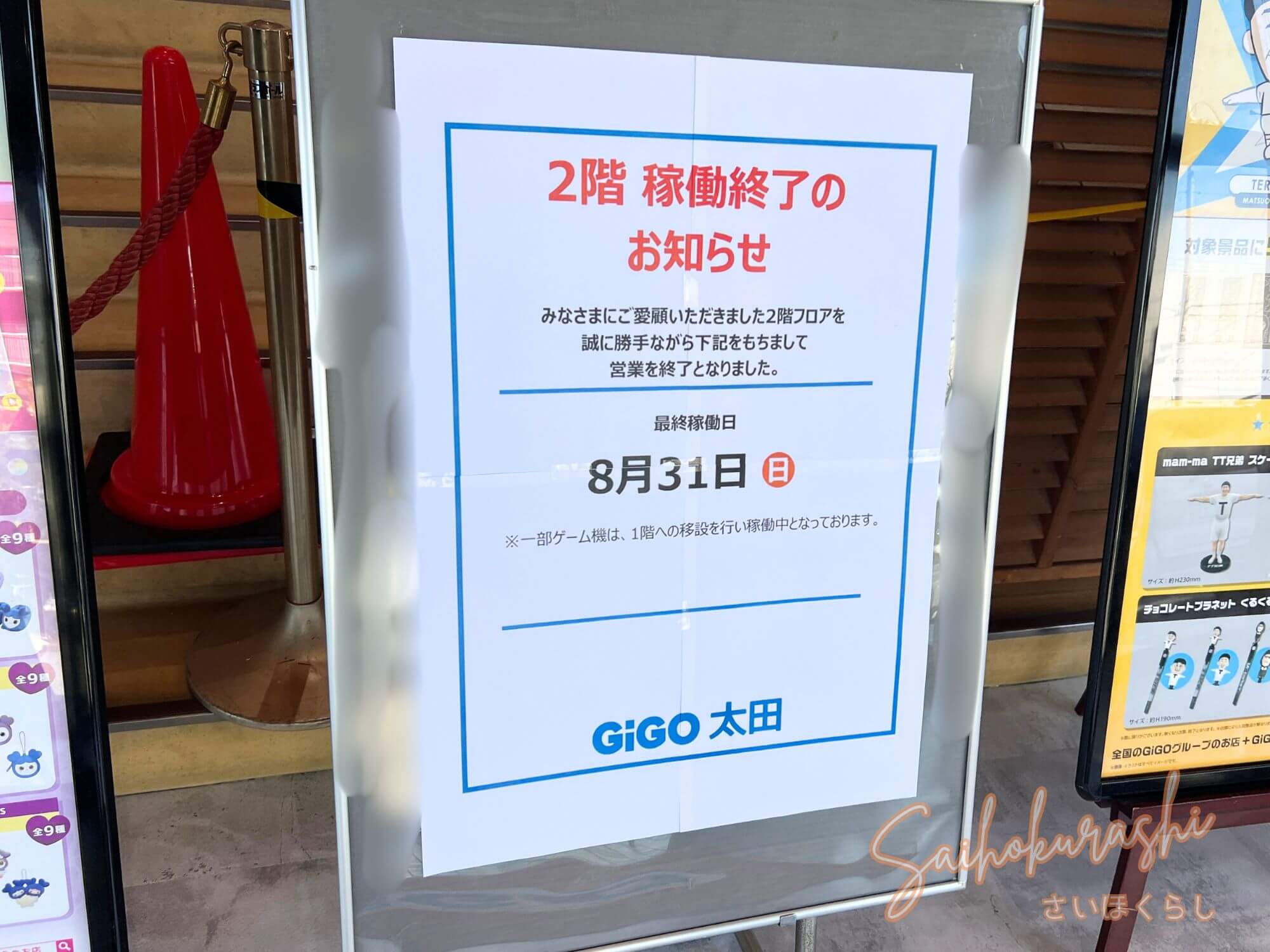 ▼『GIGO(ギーゴ)太田』2階フロア営業終了のお知らせ