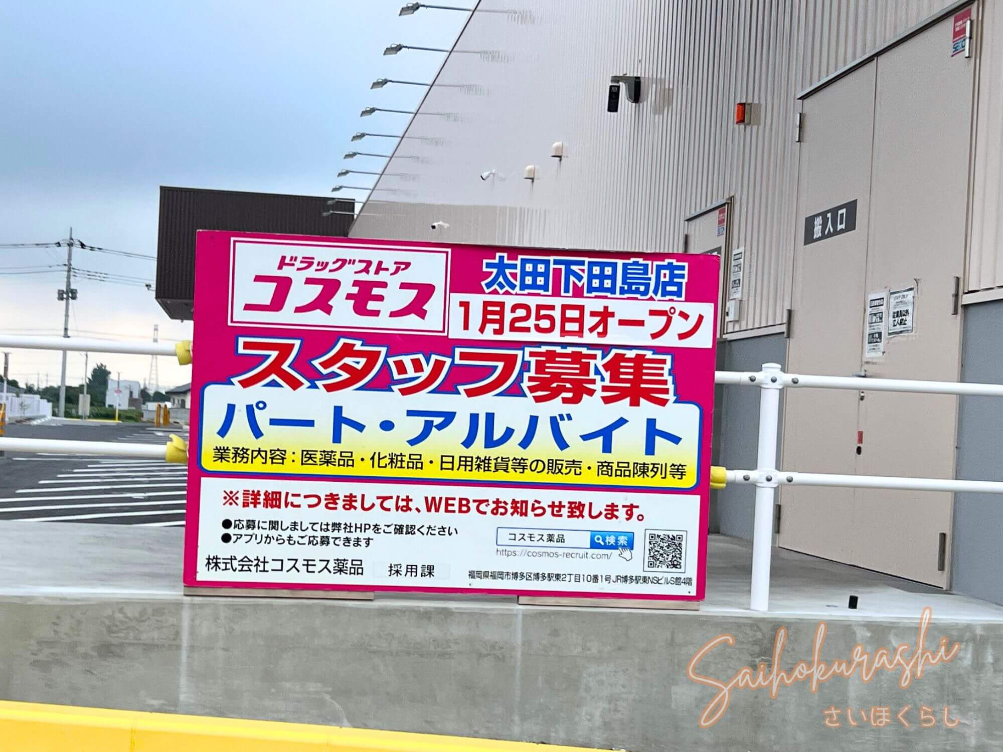 太田市下田島町に『ドラッグストアコスモス 太田下田島店』がオープン予定です。