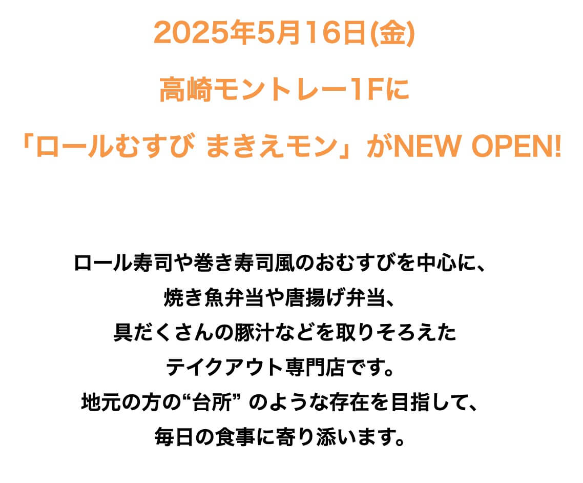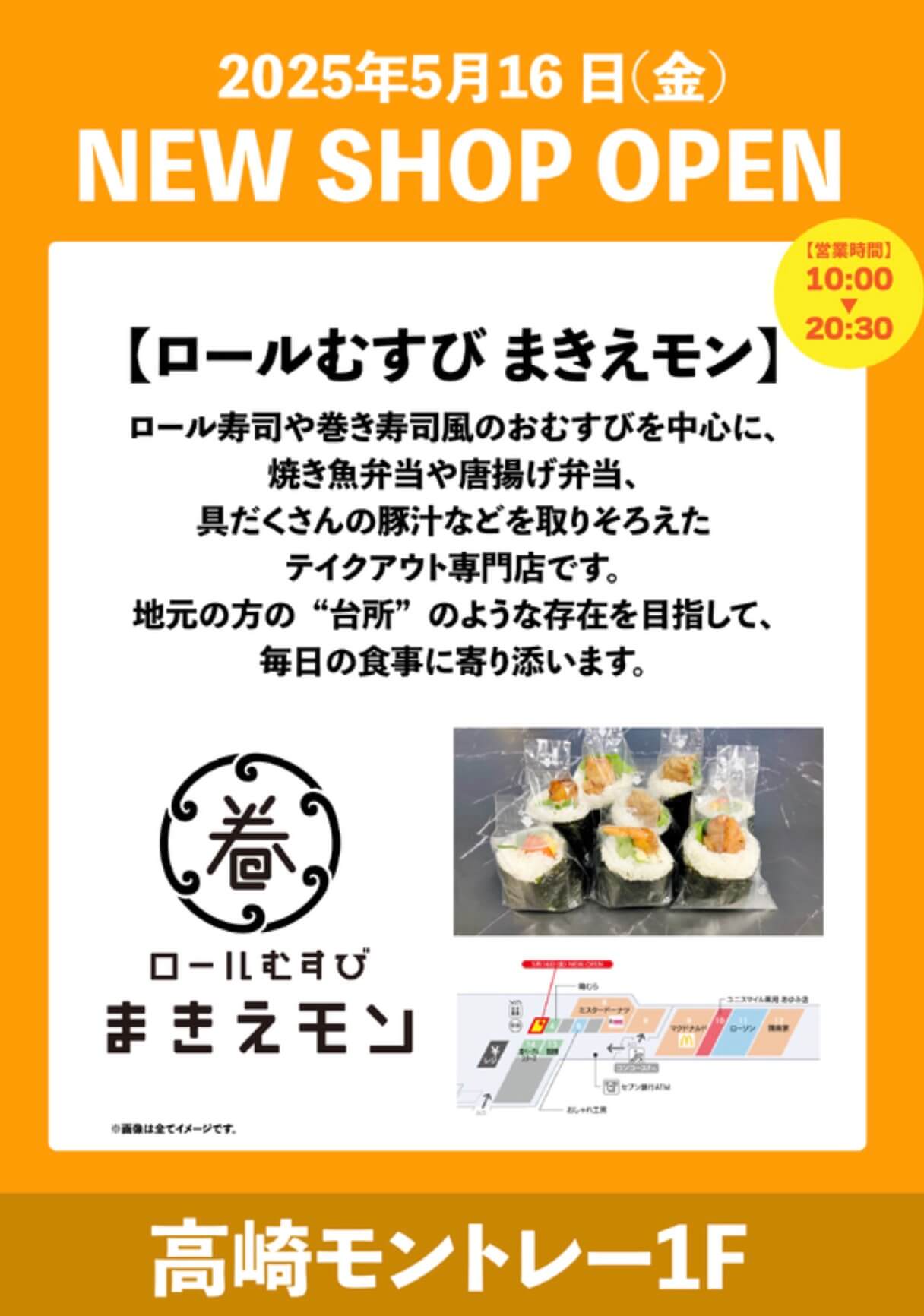 【新店】2025年5月16日オープン!新感覚『ロールむすび まきえモン』が高崎駅直結で登場!JR高崎駅直結、便利な「高崎モントレー」の1階に新感覚おむすびの『ロールむすび まきえモン』というお店がオープン予定のようです。 オー...