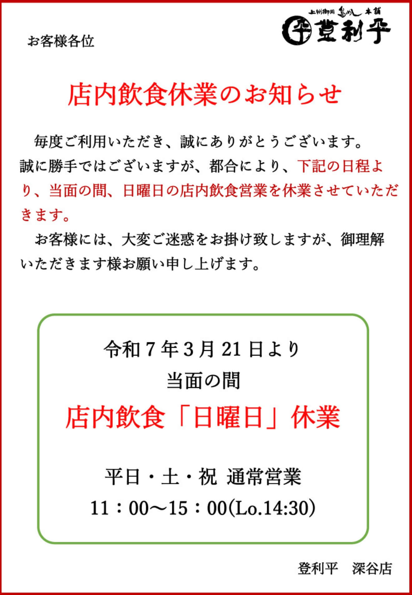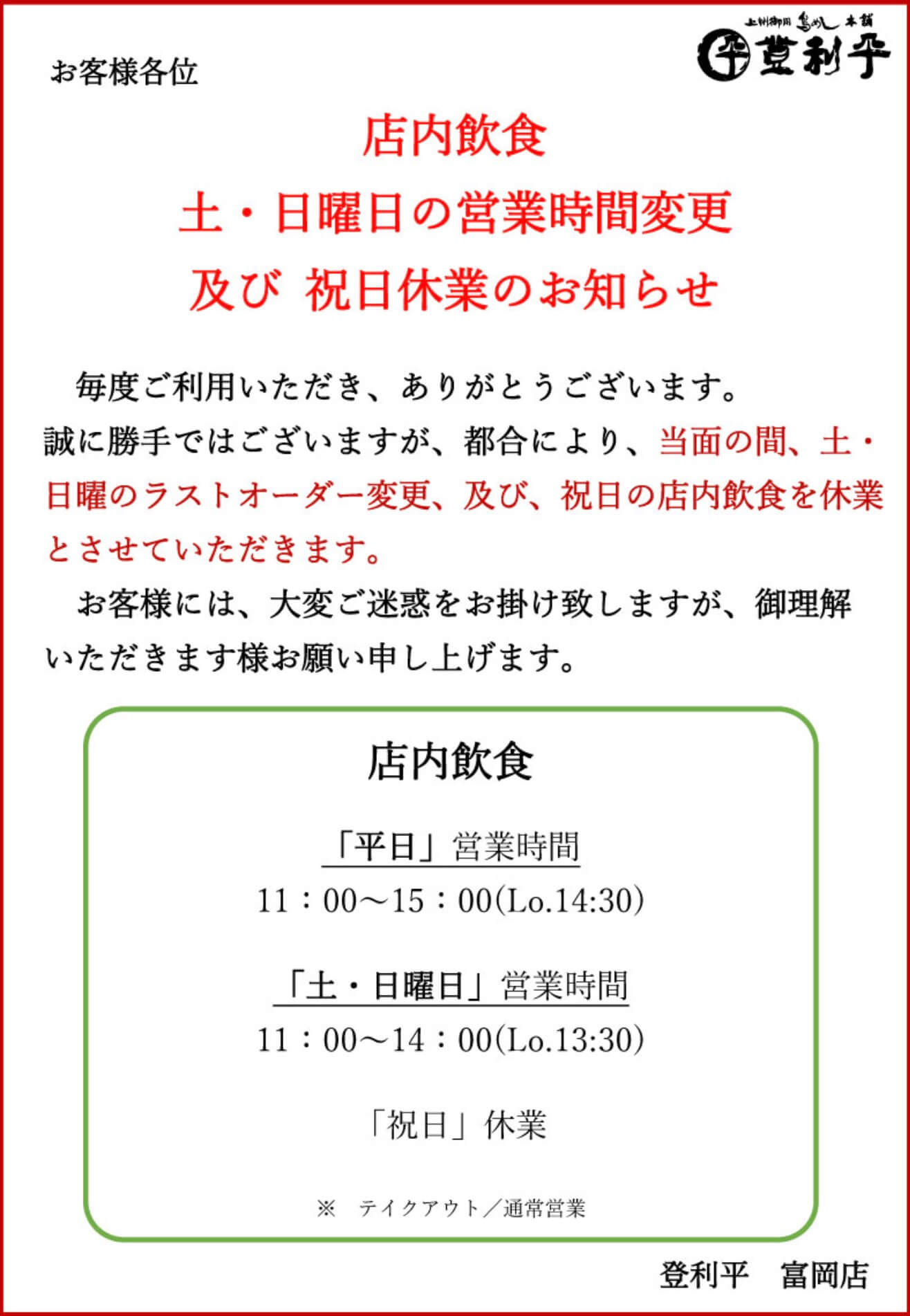 最近では「深谷店」の日曜店内飲食が休業となったり、「富岡店」の営業時間変更などがあったりしていますね><