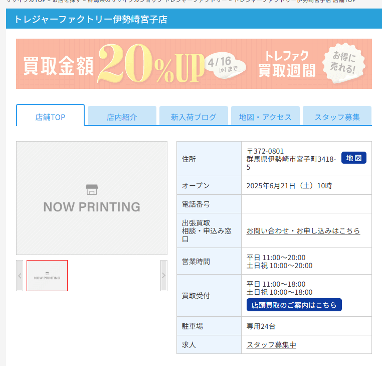 更に2025年4月26日には高崎市下之城町に「トレジャーファクトリー高崎下之城店」がオープン予定となっています。