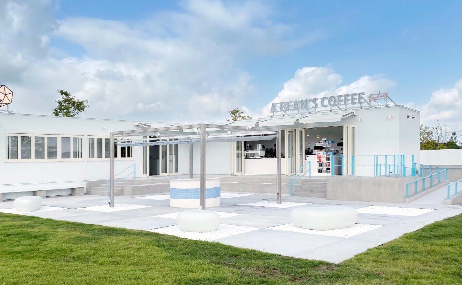 敷地内にはおしゃれなカフェ「A BEAN’S COFFEE」があり、こだわりのコーヒーや軽食を楽しめます。