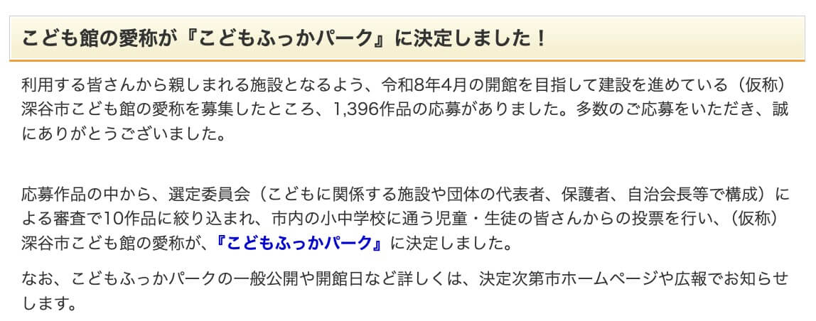 こども館の愛称が『こどもふっかパーク』に決定したようです!