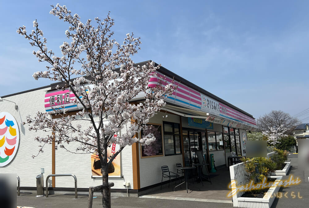 その桜が咲いていて、コンビニとはいえちょっとしたお花見ができますね。