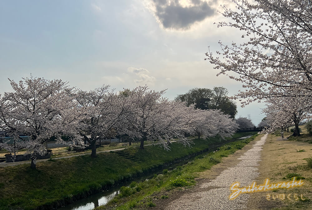 ソメイヨシノを中心に園内各所で開花し、特に清水川沿いの桜並木は見応えがあり散策路としても人気の公園です。