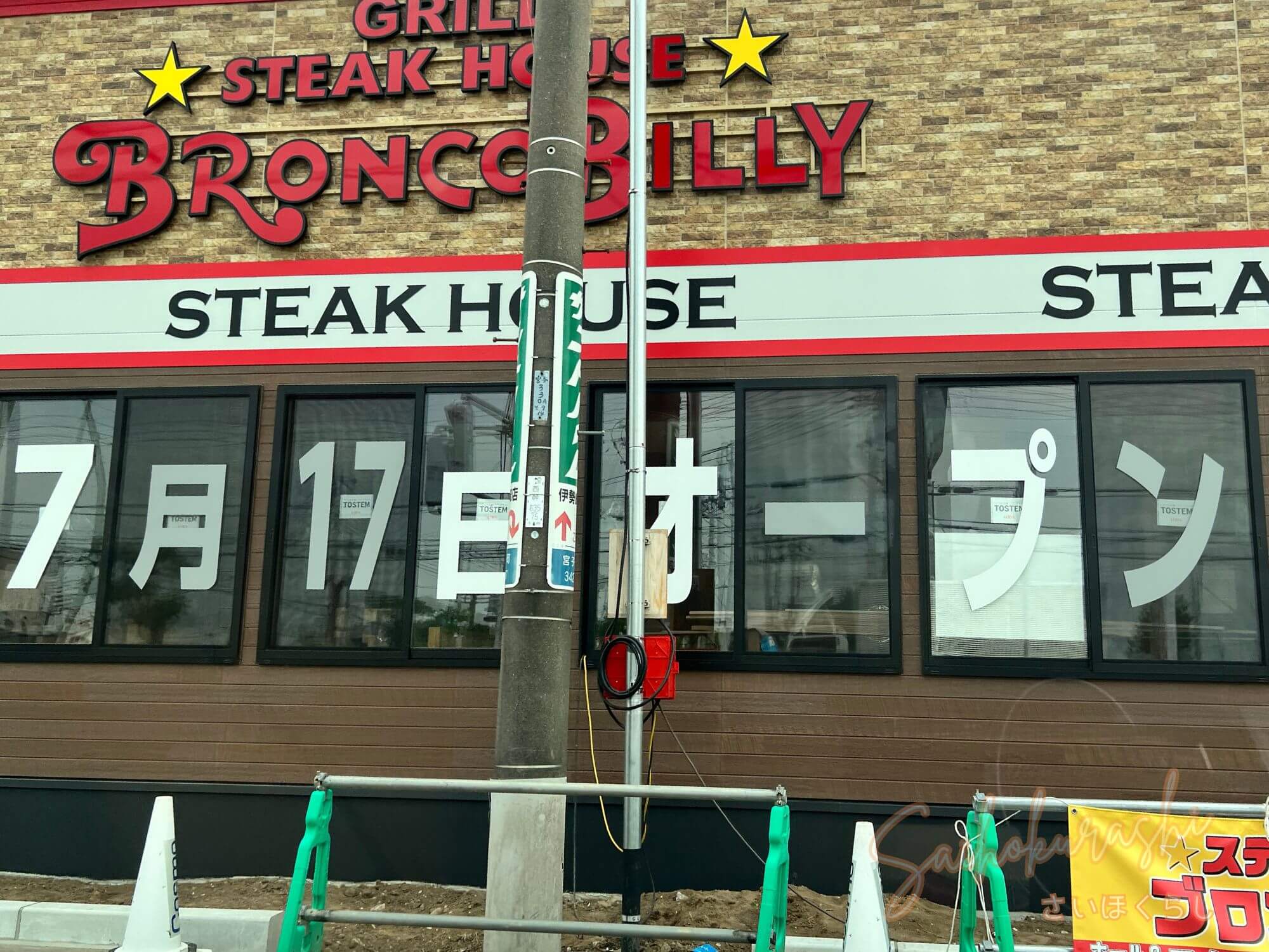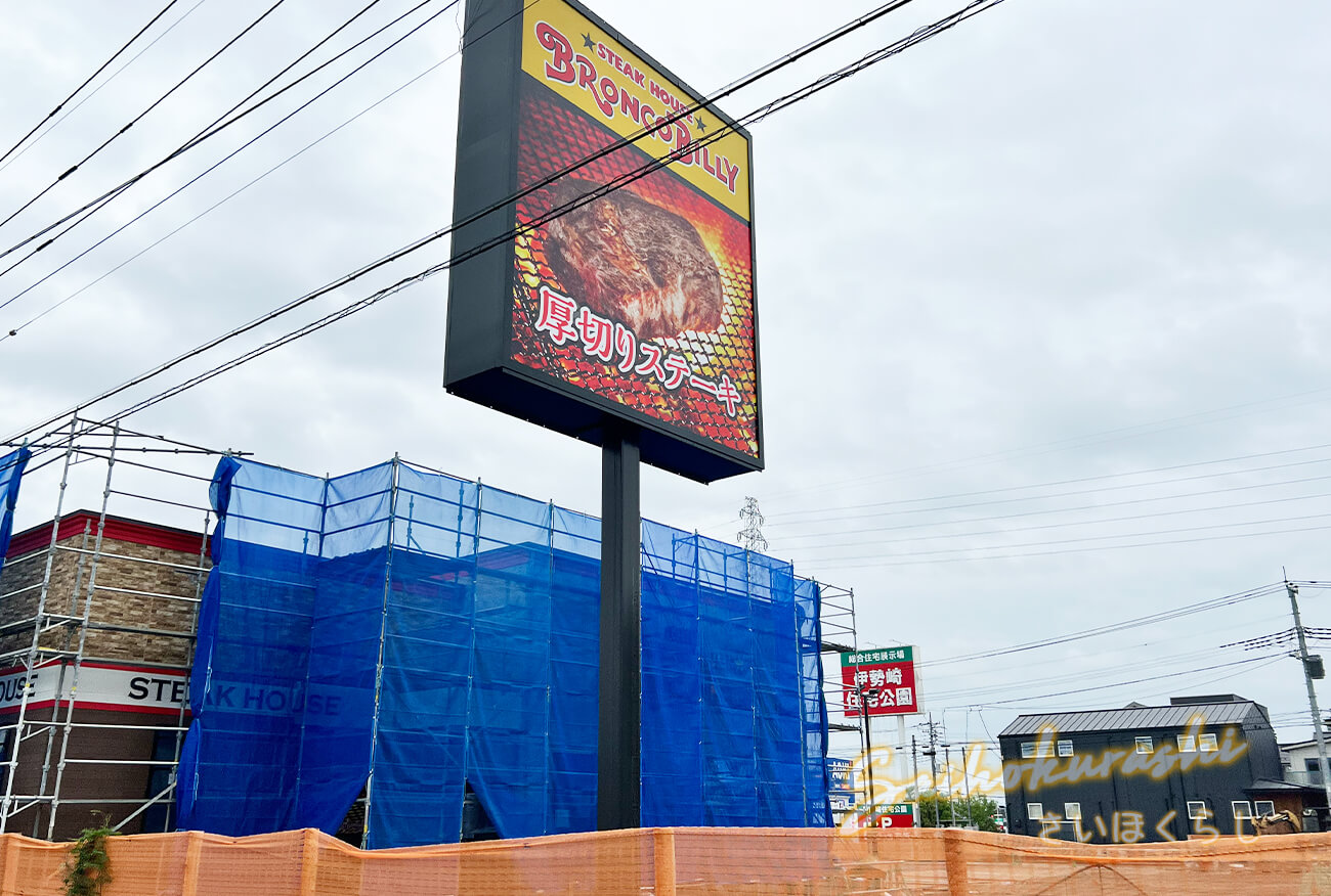 看板も設置された「ブロンコビリー伊勢崎店」。