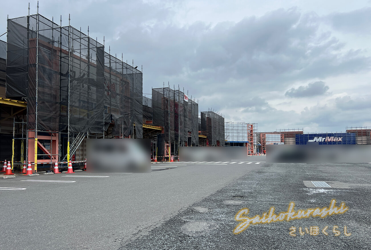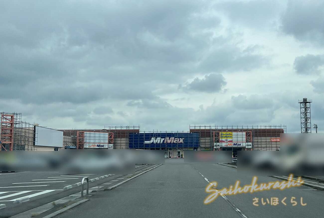 「ロピア 伊勢崎店」オープン予定地と同じく、ミスターマックスは施設全体で看板工事中。