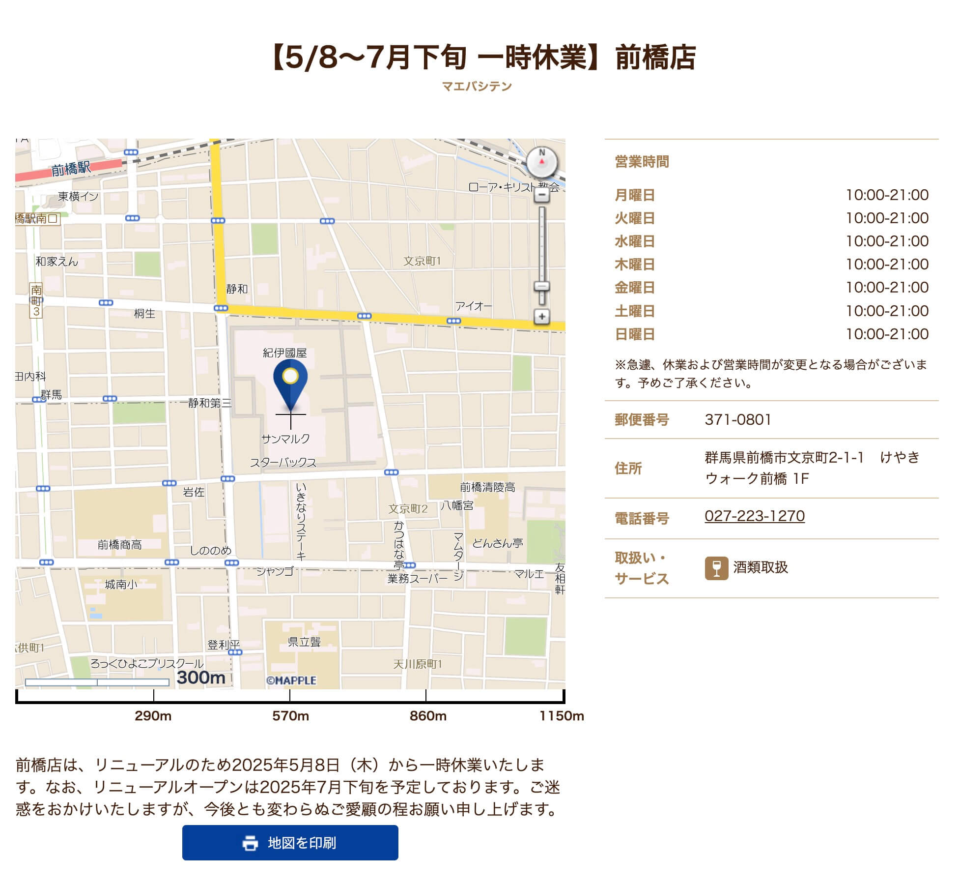 群馬県前橋市のショッピングモール「けやきウォーク前橋」内にある『カルディコーヒーファーム けやきウォーク前橋店』が、2025年5月8日よりリニューアルのため一時休業し、同年7月下旬に再オープンする予定です。