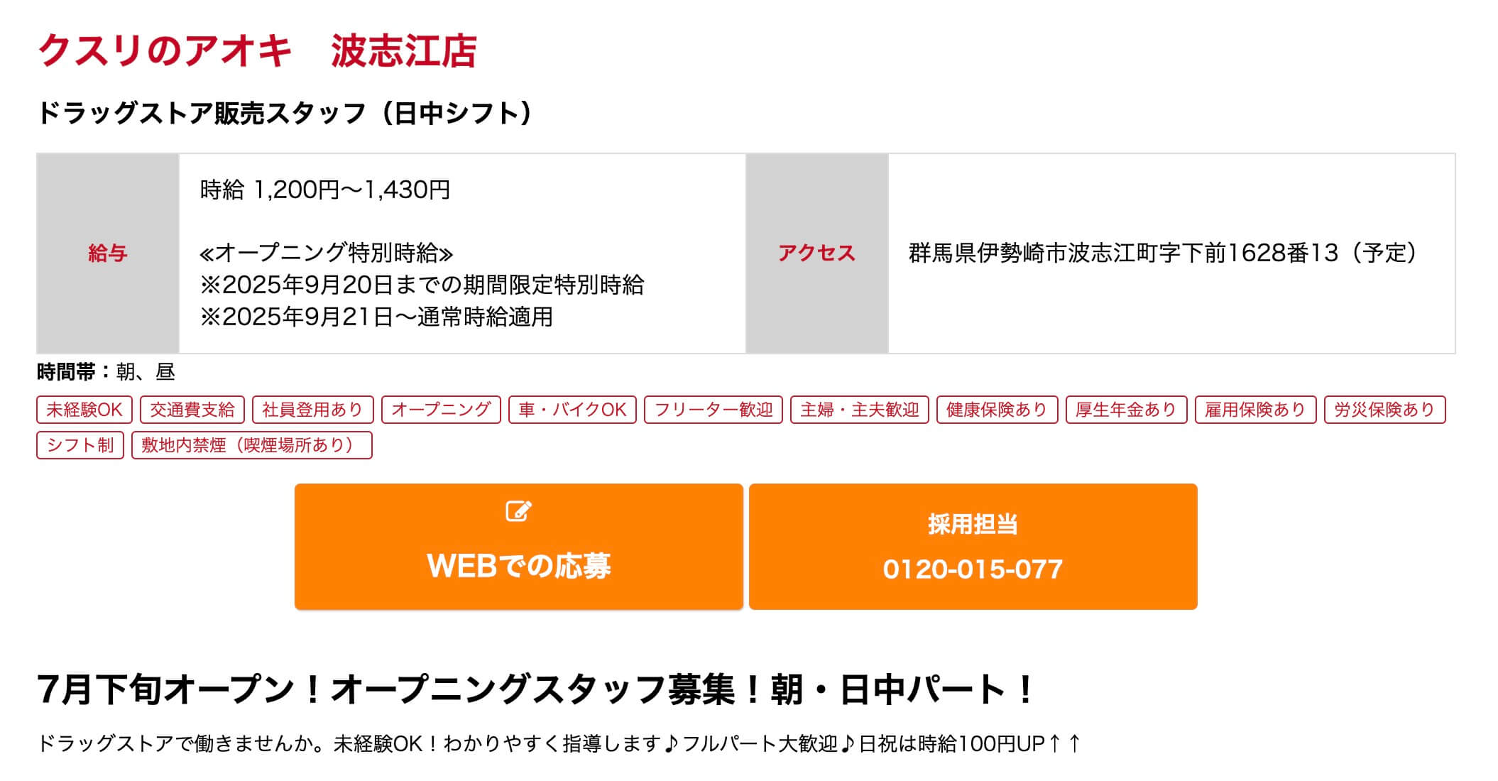 群馬県伊勢崎市波志江町に『クスリのアオキ 波志江店』が新規オープン予定です。