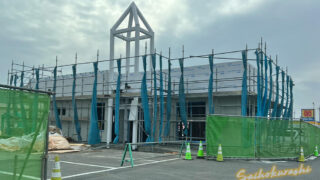 建物の建設はほぼ完了しており、広告塔も設置され、外構工事もほぼ完成しているような雰囲気があります。