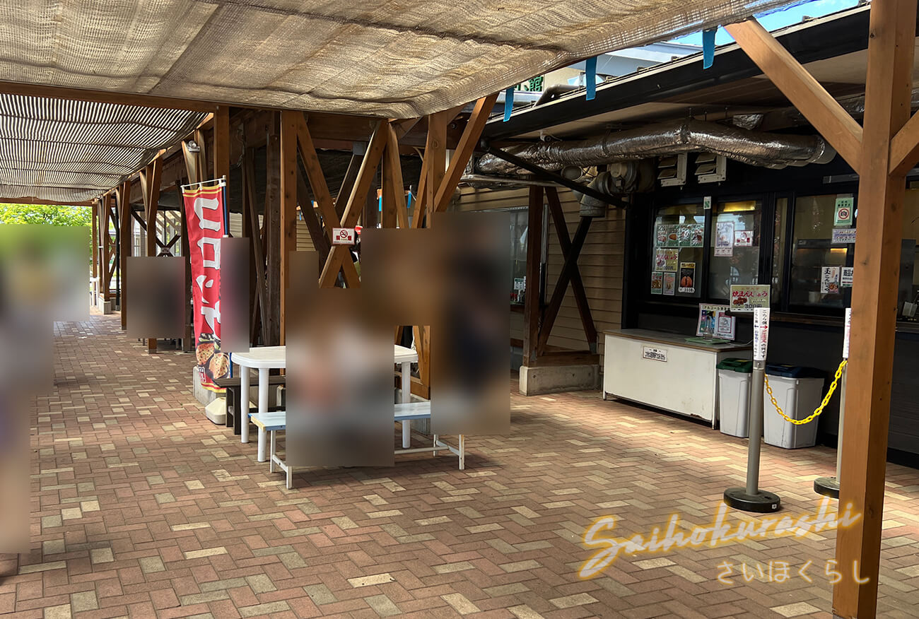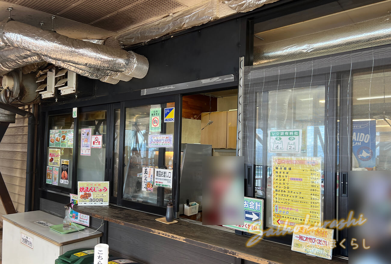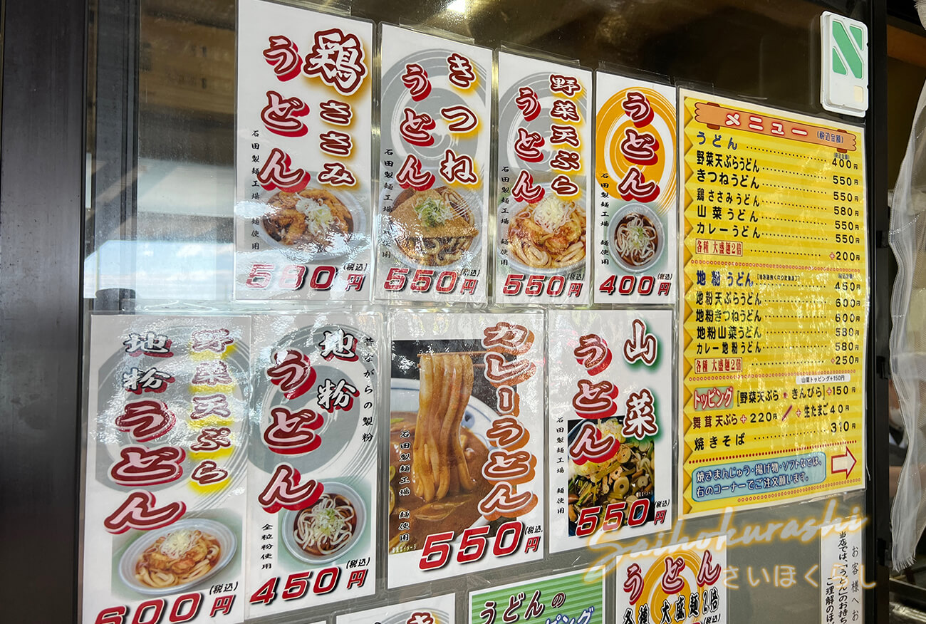 建物の手前にある食事処では、うどんやそばを中心としたメニューが充実していました。