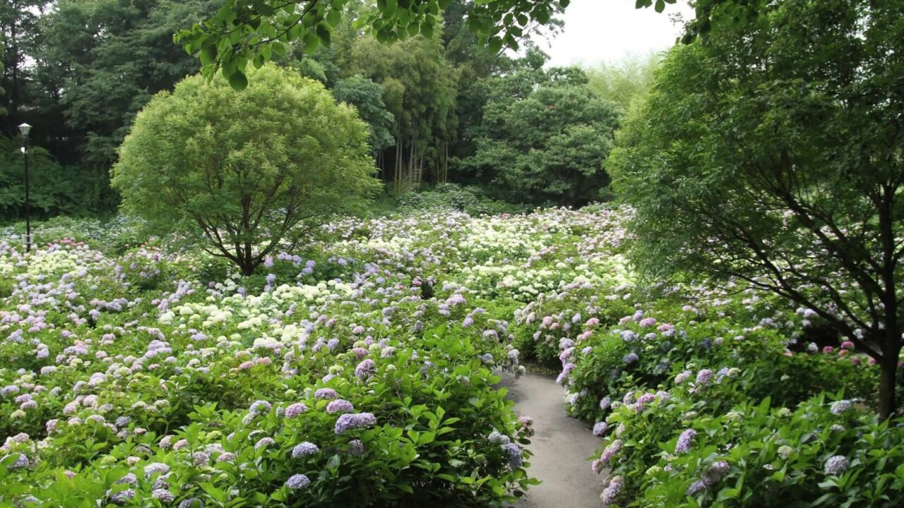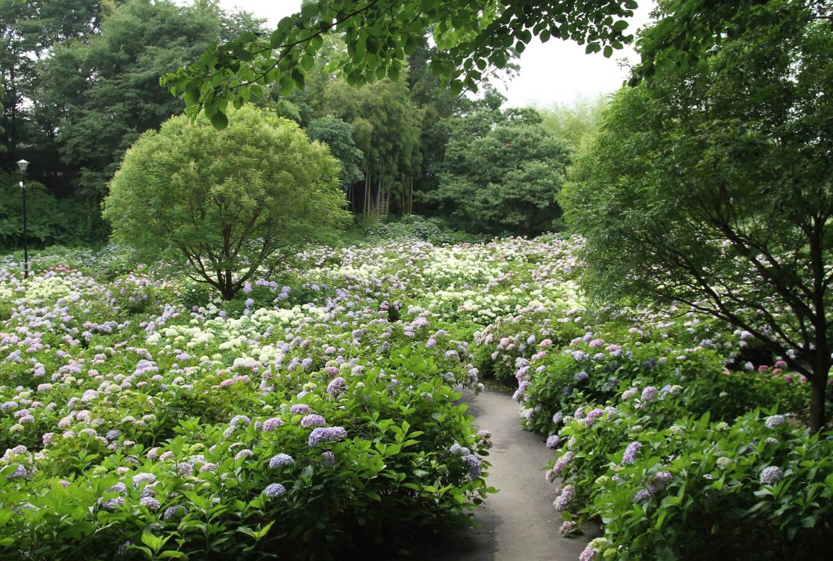約1万6,000株ものアジサイが、公園を華やかに彩ります。