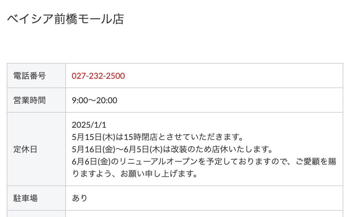 店内改装のため「ベイシア 前橋モール店」は一時休業
