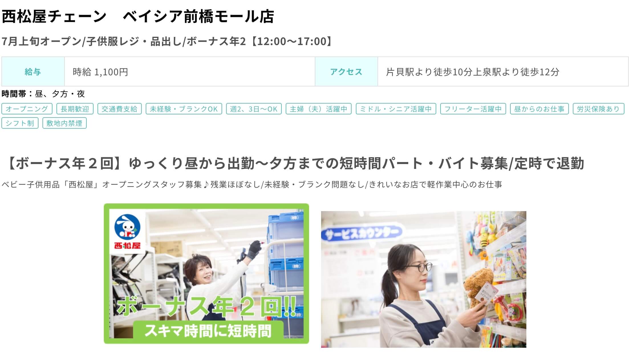 群馬県前橋市にある「ベイシア前橋モール」に、新たに『西松屋チェーン ベイシア前橋モール店』がオープン予定となっているようです。