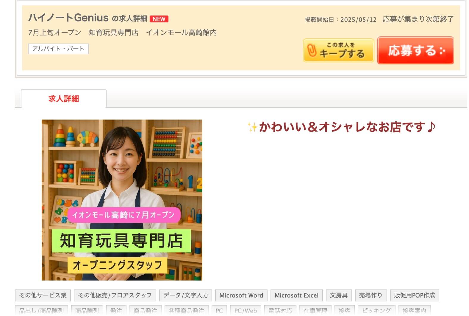 群馬県を拠点に文房具店を展開する「ハイノート」から、知育玩具に特化した新店「ハイノートGenius(ジーニアス)」がオープン予定のようです。