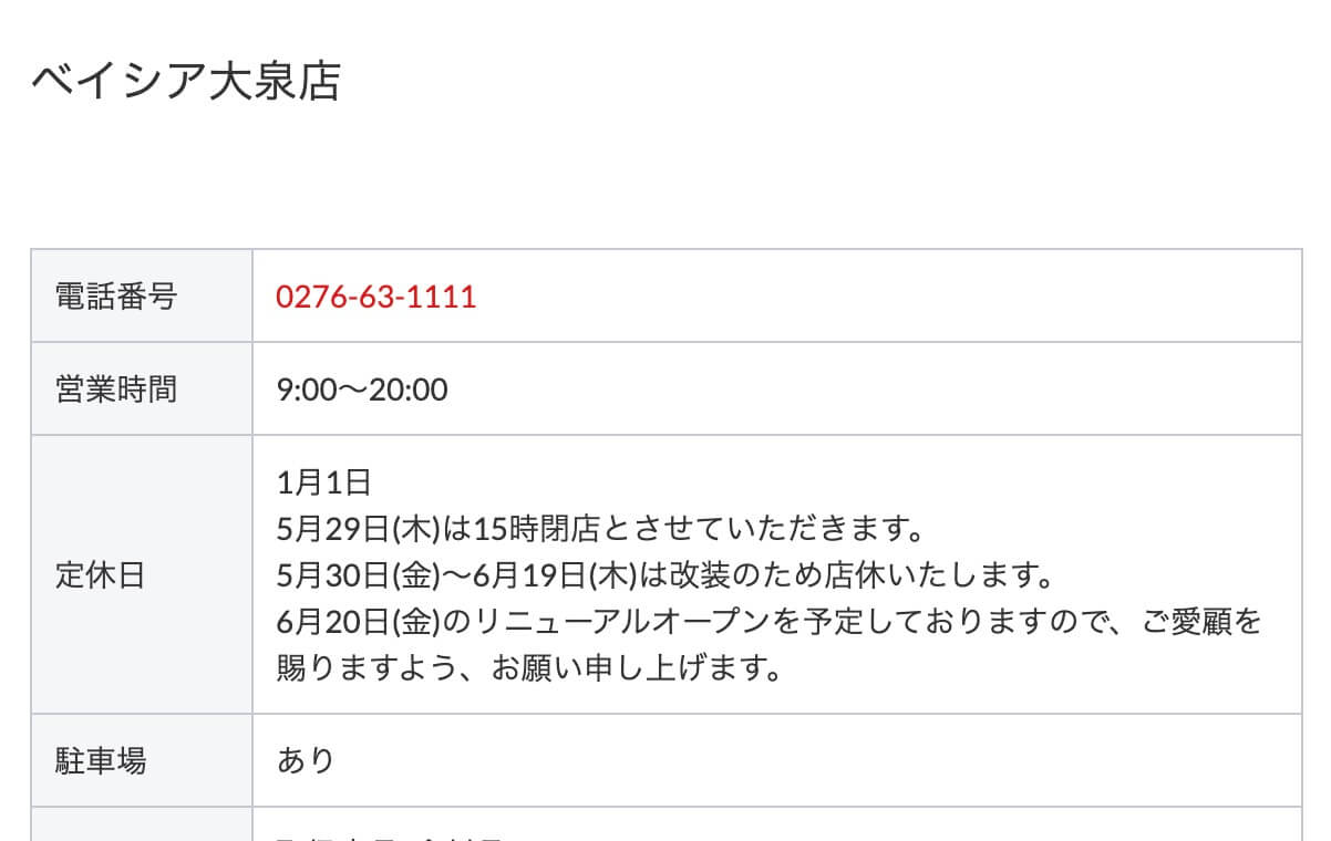『ベイシア 大泉店』改装休業!ご利用の方はご注意を!