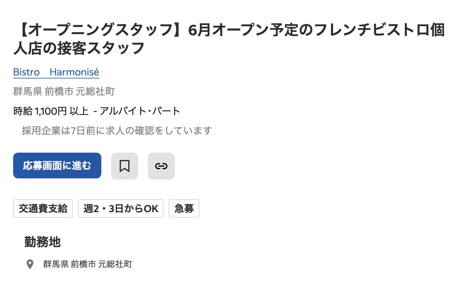 群馬県前橋市元総社町にフレンチビストロ『Bistro Harmonisé(ビストロ アルモニゼ)』がオープン予定です。