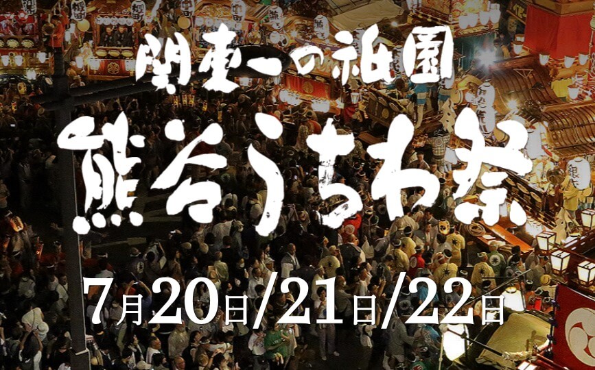 「関東一の祇園」とも呼ばれる、熊谷の伝統的な夏祭り。山車や屋台が市内を練り歩き、夜はお囃子の競演が大きな盛り上がりを見せます。