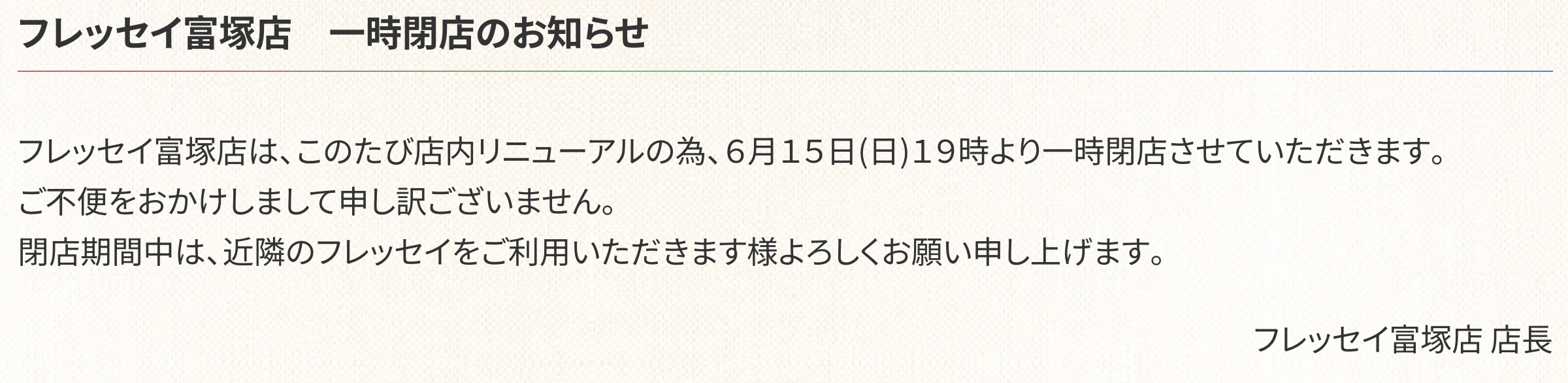 『フレッセイ富塚店』がリニューアル予定!2025年6月15日から一時閉店へ