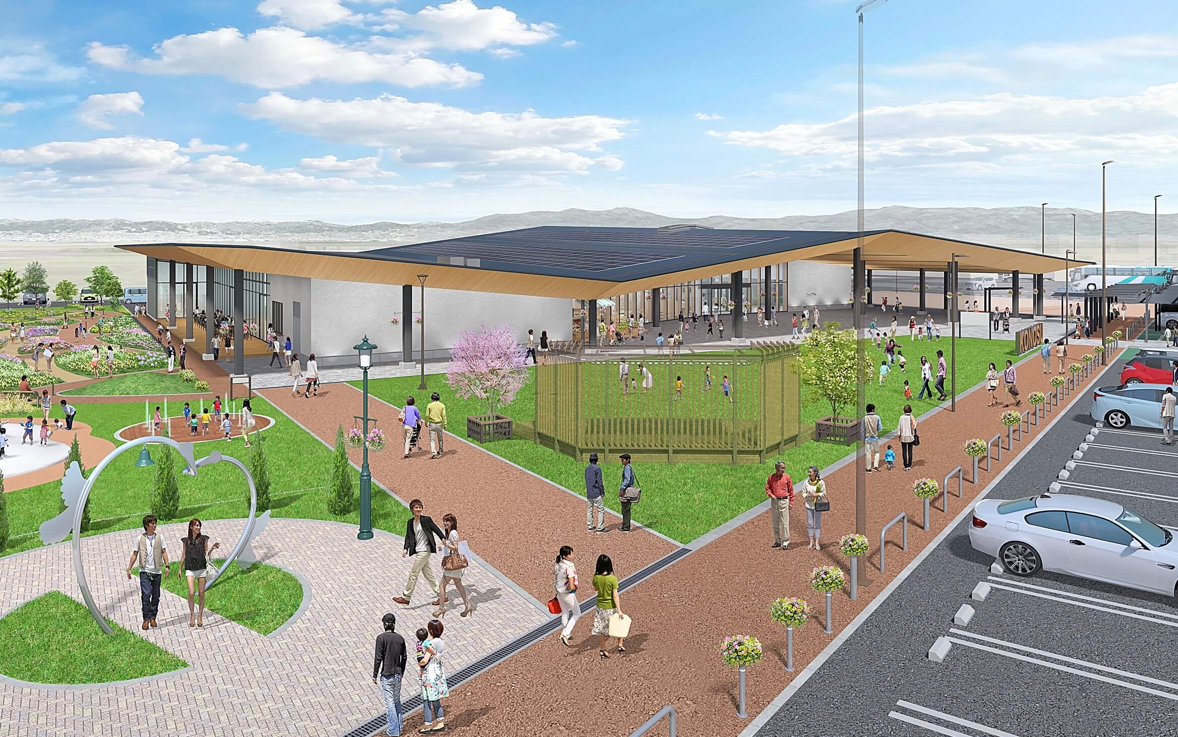 約270席のフードコートや子どもの遊び棟、ふわふわドームのある芝生広場などファミリー機能が充実する予定。